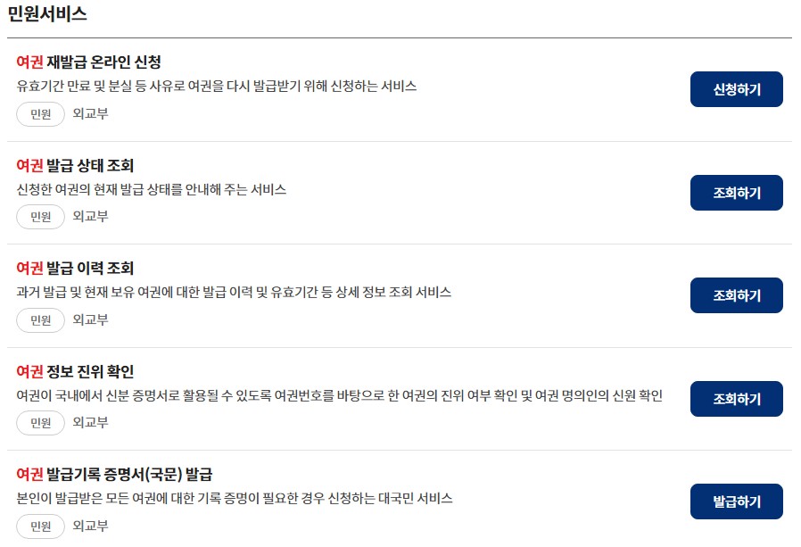 - 이력 확인: 발급된 여권의 정보와 유효기간 등을 확인할 수 있습니다.